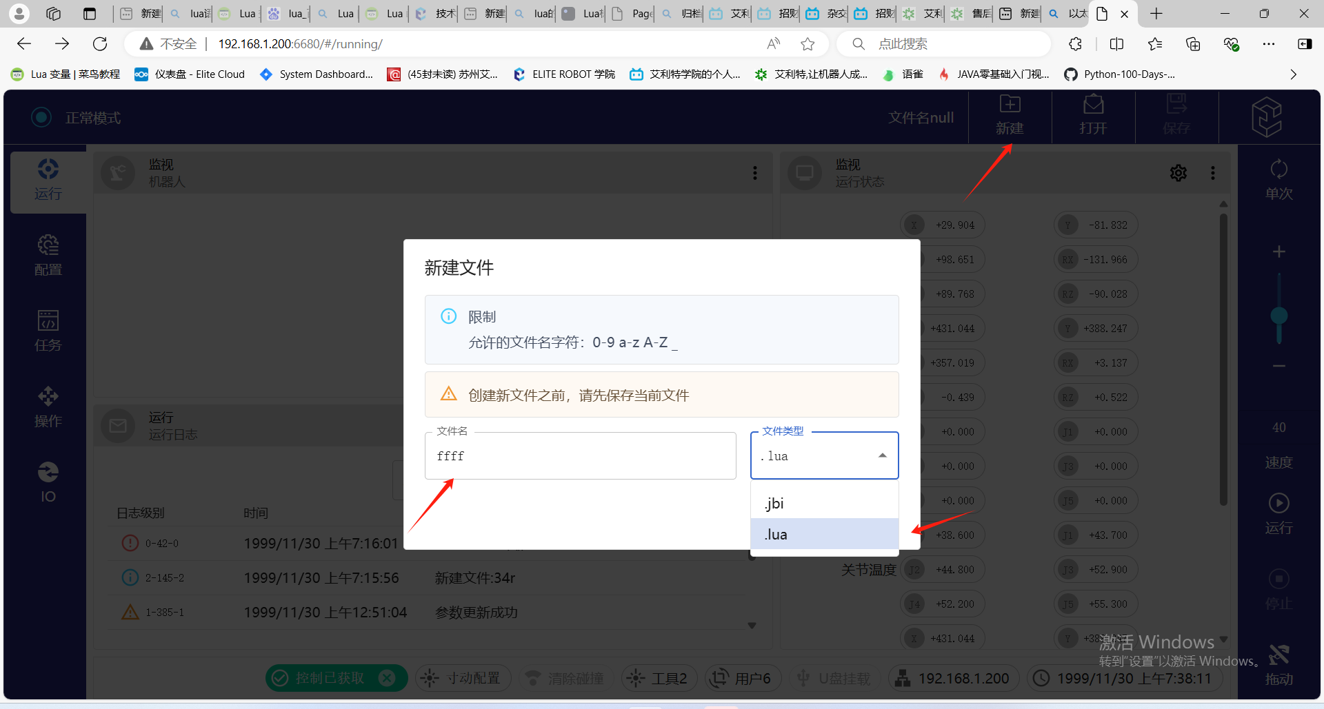 1. 推荐使用Web示教器进行LUA编程,详细使用Web示教器可以咨询官方技术文档。