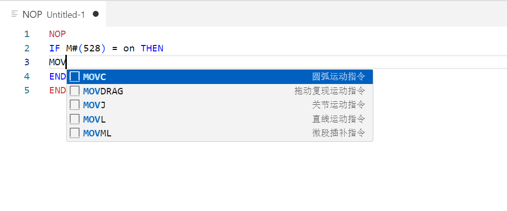 当扩展插件安装成功时,使用该脚本语言写程序时会有自动补全和代码提示功能。