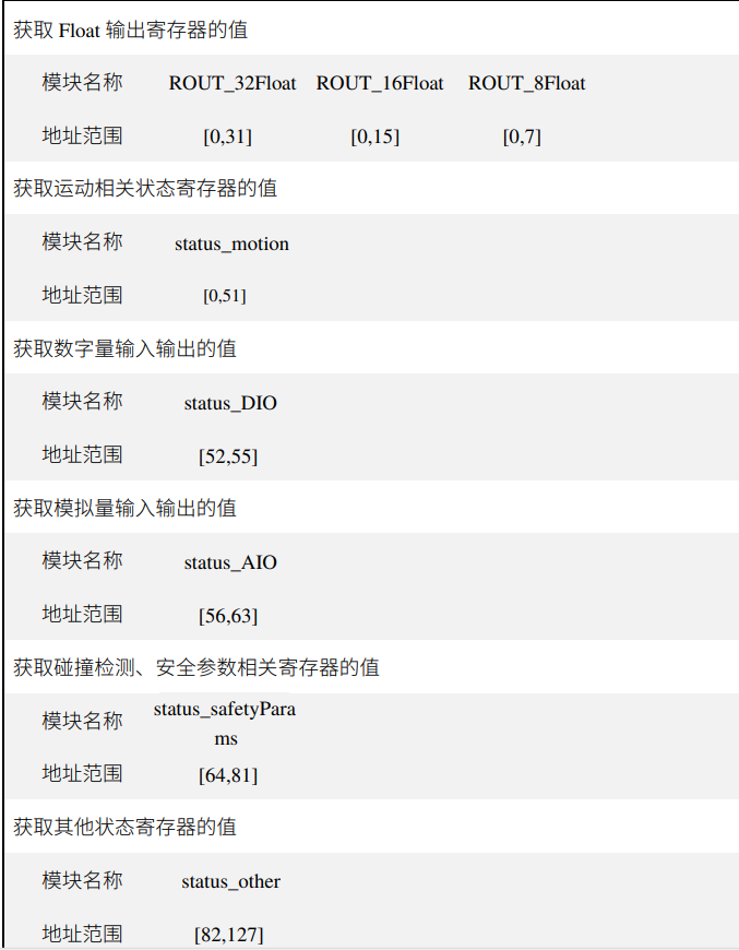 9.  具体寄存器详细功能(比如想获取机器人当前位姿或者角度以及系统状态这种) 可查找通信协议手册。