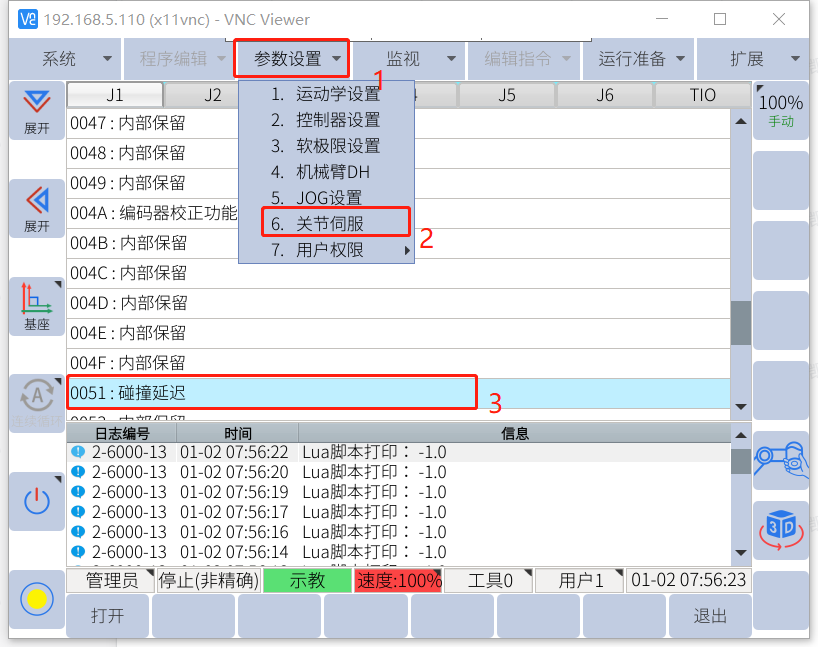 参数设置-关节伺服-打开0032参数写入5进入保存.