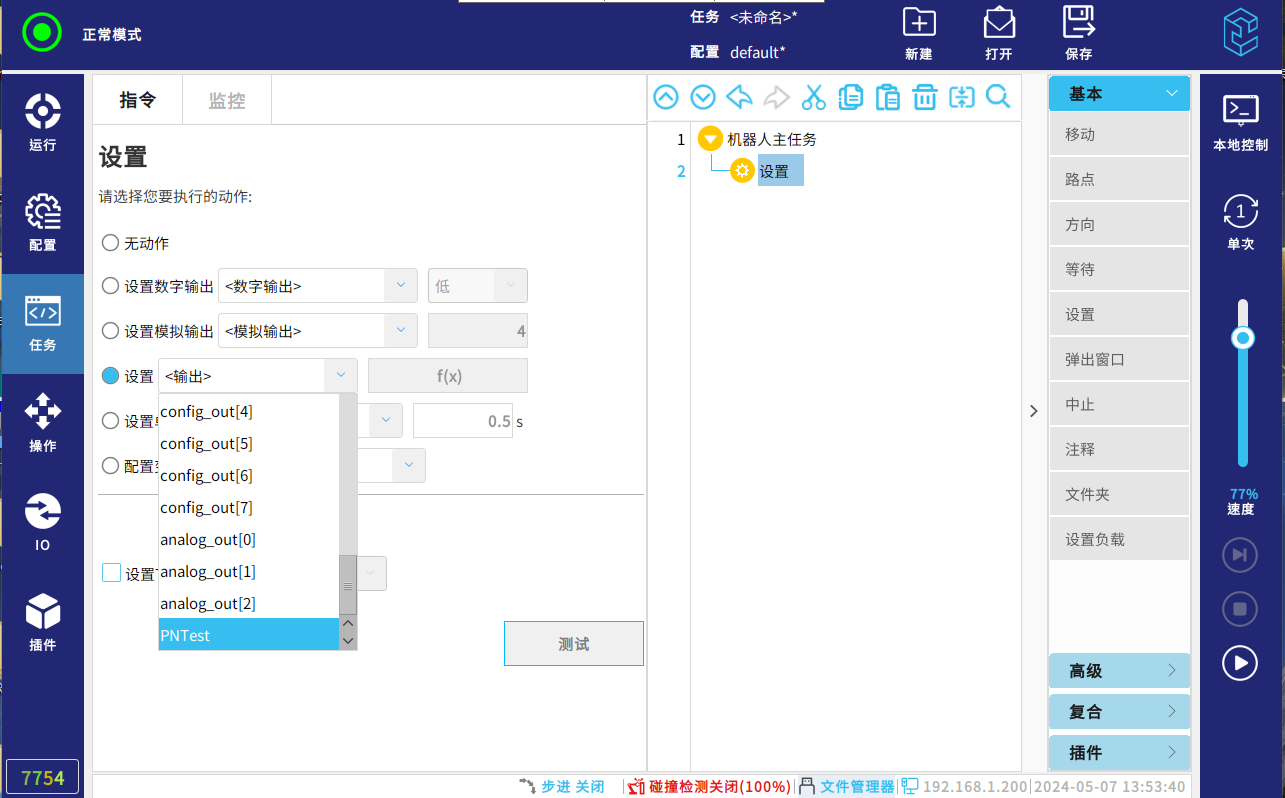如下图,选择设置指令,选择配置好的整数寄存器输出名称: