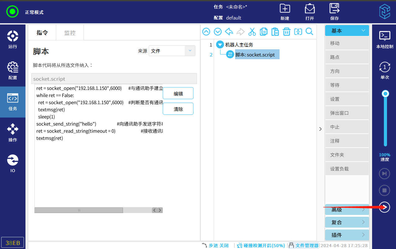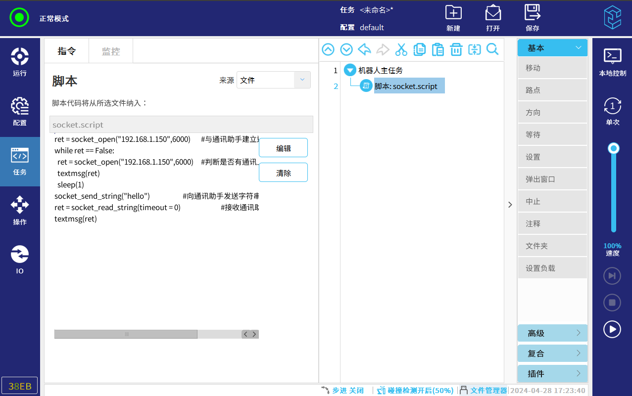 2.6.  编写通讯脚本。详情参考CS脚本手册-通讯目录下的socket,可在米兰·(milan)中国官网下载。技术资料-米兰·(milan)中国机器人